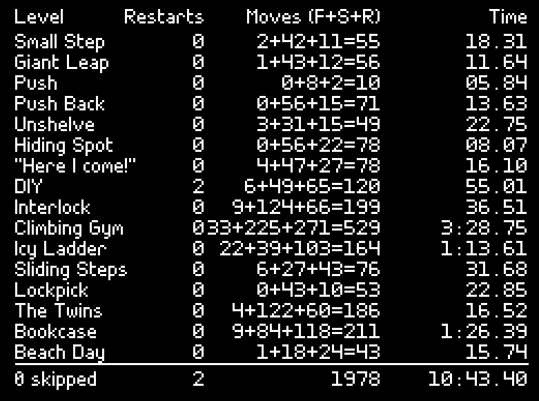 - Hold Scoot Right + Flip to skip the current level.